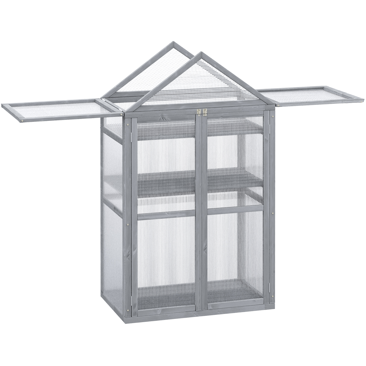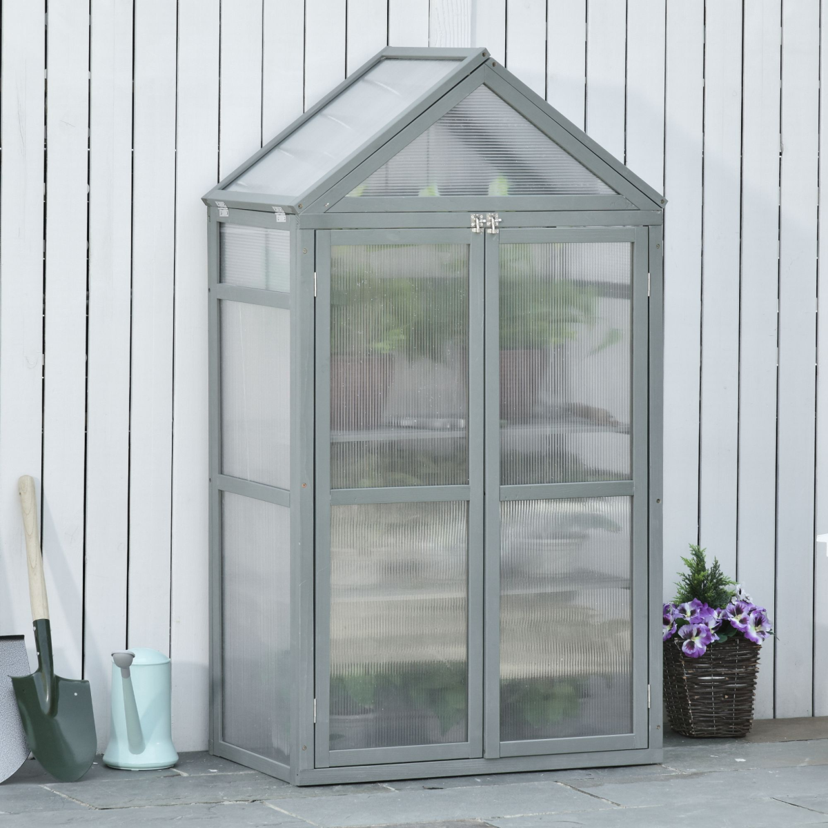 This cold frame greenhouse from Outsunny can be a perfect choice for you to take care of your lovely plants. Solid wood frame for reliability. Transparent polycarbonate panels allow maximum light transmission while retaining heat for early seed sprouting or for protecting plants late in the season. Double doors and a 3-tier shelf make planting easier. This greenhouse provides an environment with an ideal temperature, your plants can enjoy the sunlight and grow healthily.