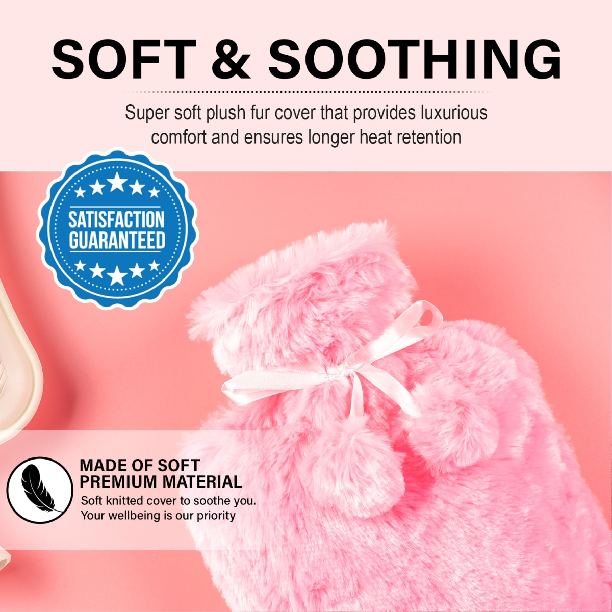 Generise 2L Hot Water Bottle with Plush Cover Extra Warm & Safe RANDOM COLOUR