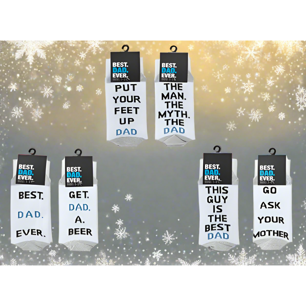 Keep Dads feet warm and stylish this holiday season with our BEST DAD EVER Christmas Stocking Filler Socks! Designed with fun, double-sided messages, these socks are the perfect blend of comfort and humour, making them a thoughtful and affordable gift. Combine them with our moustache photo frame and bottle opener to create the ultimate gift bundle!