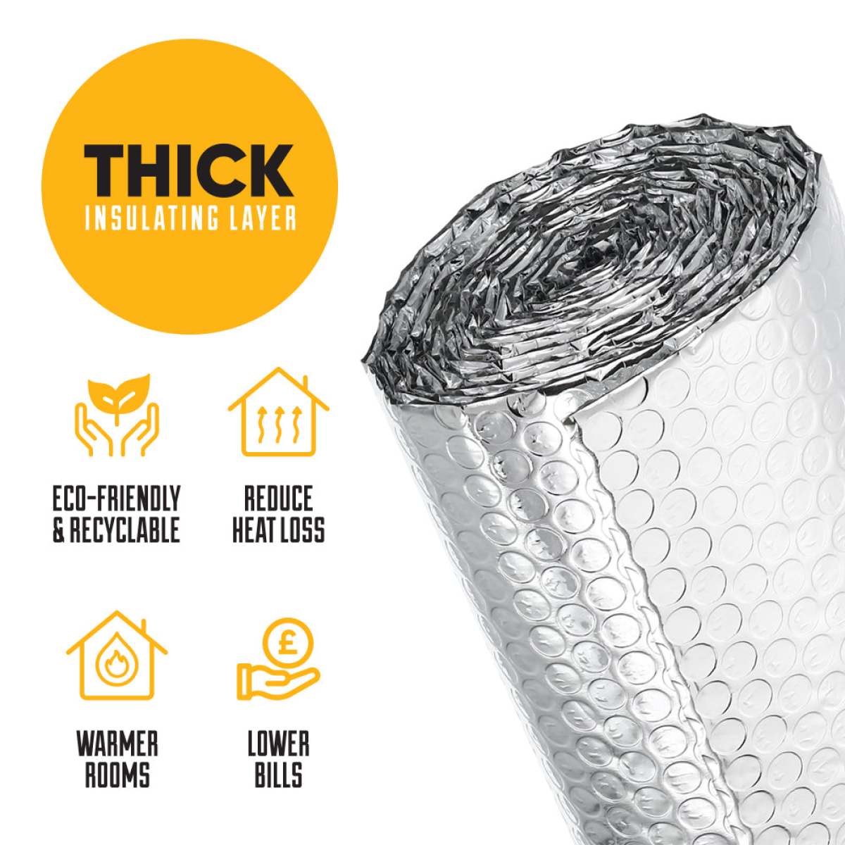 3mm Thick Bubble Foil: Durable, lightweight, and waterproof aluminium bubble insulation ensures long-lasting performance, resisting moisture and mould for indoor or outdoor use.