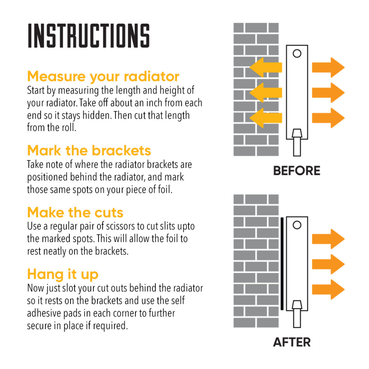 Measure Your Radiator: Measure the length and height, subtracting 2.5cm from each end to keep the foil hidden.