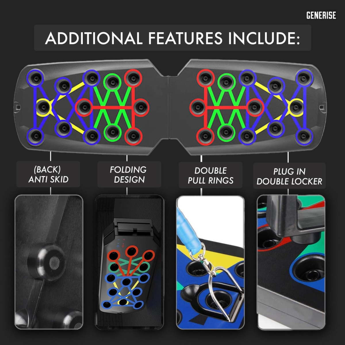 Generise Push Up Board With Handles, Straps, Non-Slip Stickers & Storage Bag