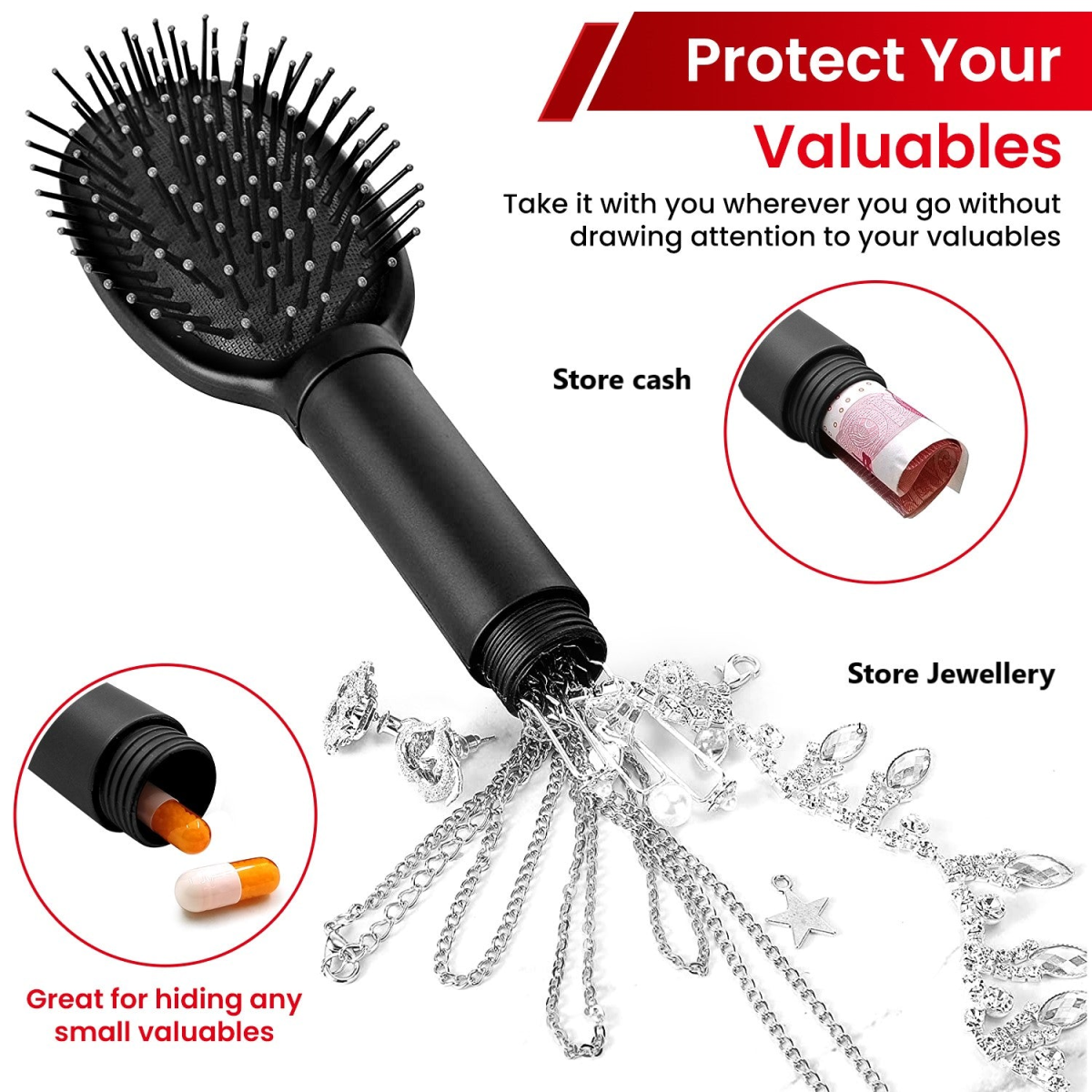 The Secret Safe Where You Can Hide Your Secret Stash. Keep Your Small Personal Belongings Safe And Sound With Our Secret Compartment Hair Brush. Hide Chains , Ear Rings And Even An Emergency Cash Fund.