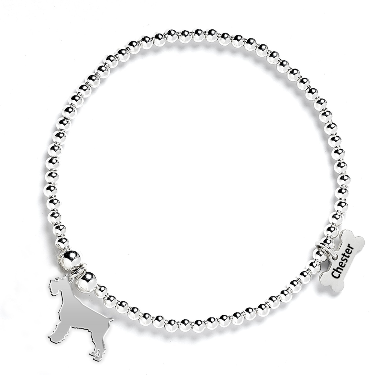 Giant Schnauzer Silhouette Silver Ball Bead Bracelet - Personalised