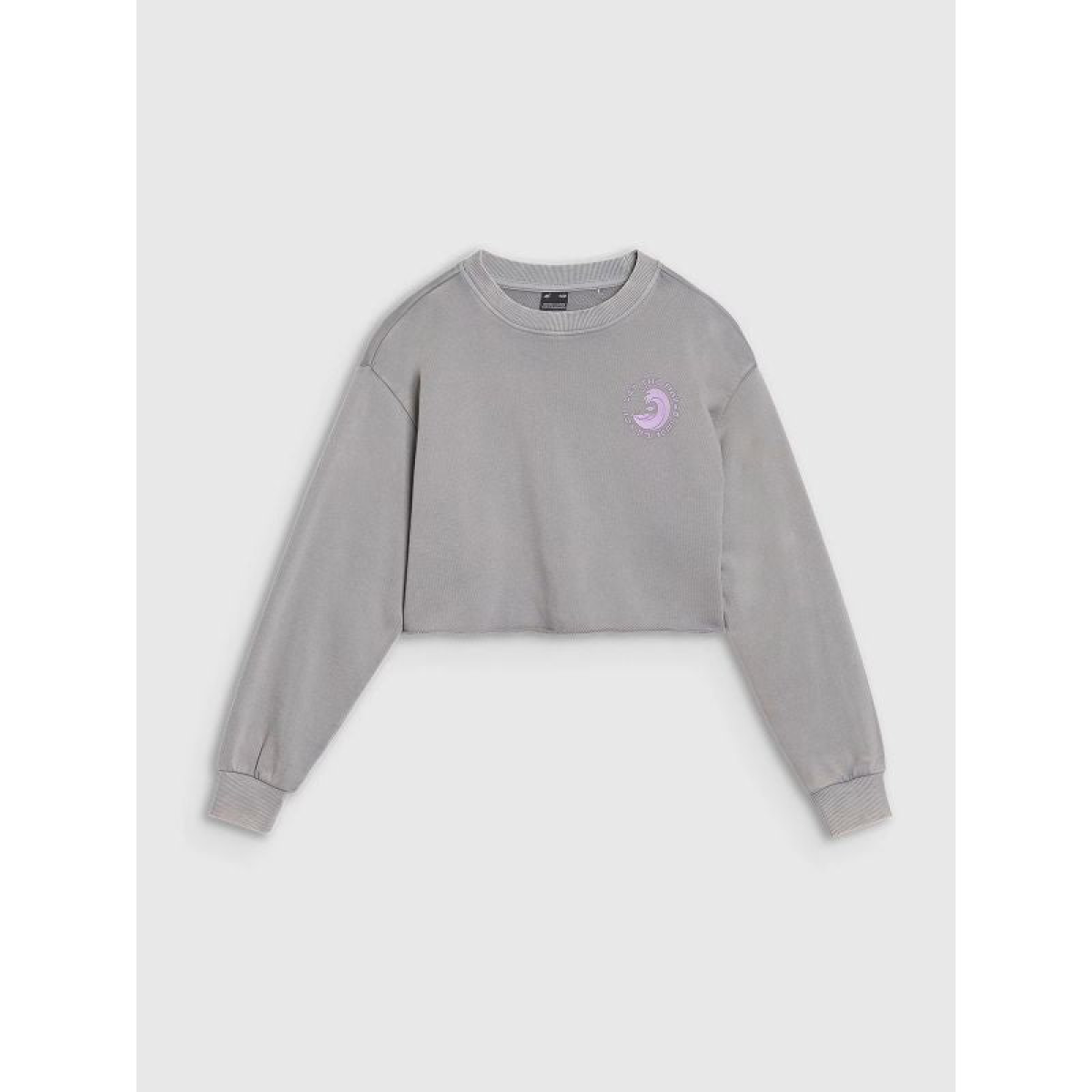 Gray 4F girls' sweatshirt without a hood - minimalist style and comfort