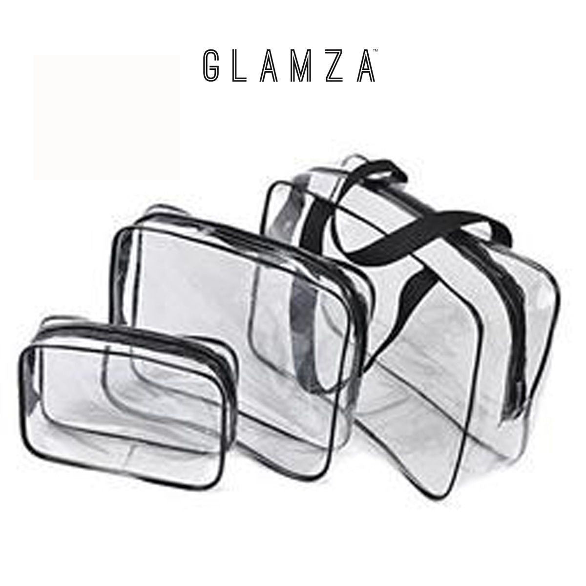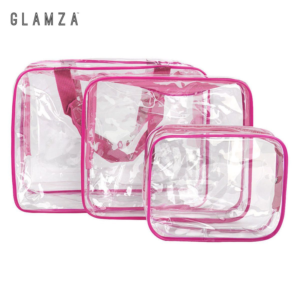Glamza 3pc Clear Travel Bags Set - Pink or Black