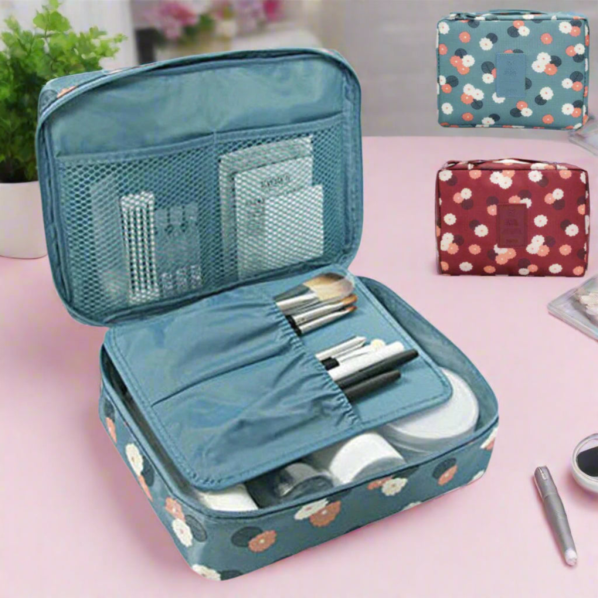 ? Multi-Pocket Organiser Multiple compartments to store makeup, toiletries, brushes, skincare, and travel essentials.