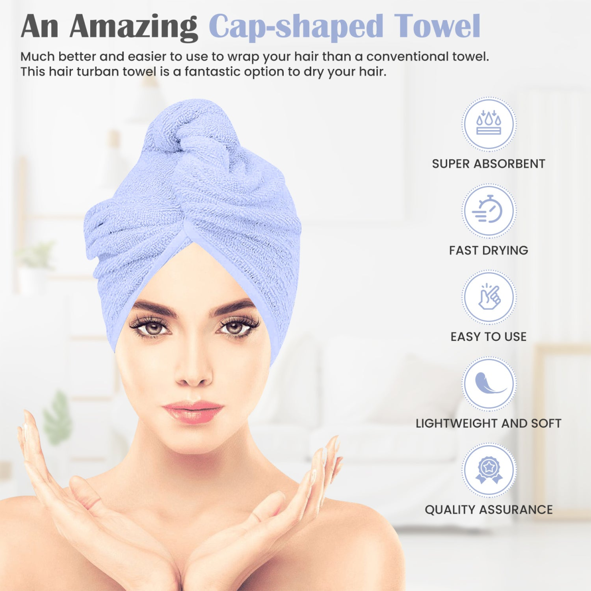 Our towels will dry your hair in just a few minutes!