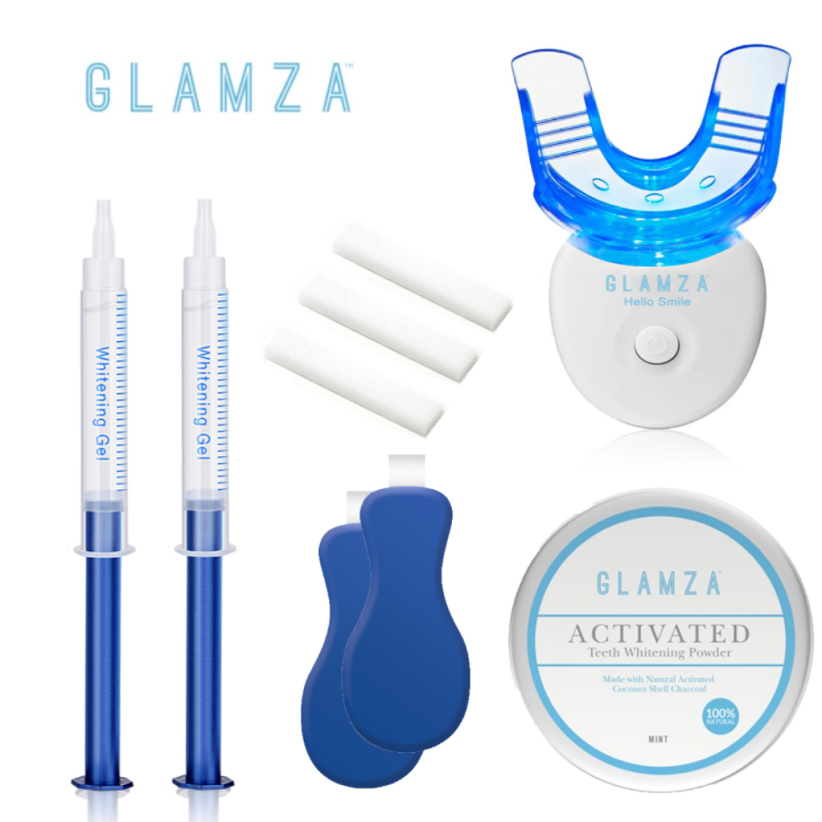 Glamza 'Ultimate' Teeth Whitening Kit- 1 x Hello Smile, 2 x 10ml Gels, 1 x Pro Nano, 1 x Glamza Charcoal Powder