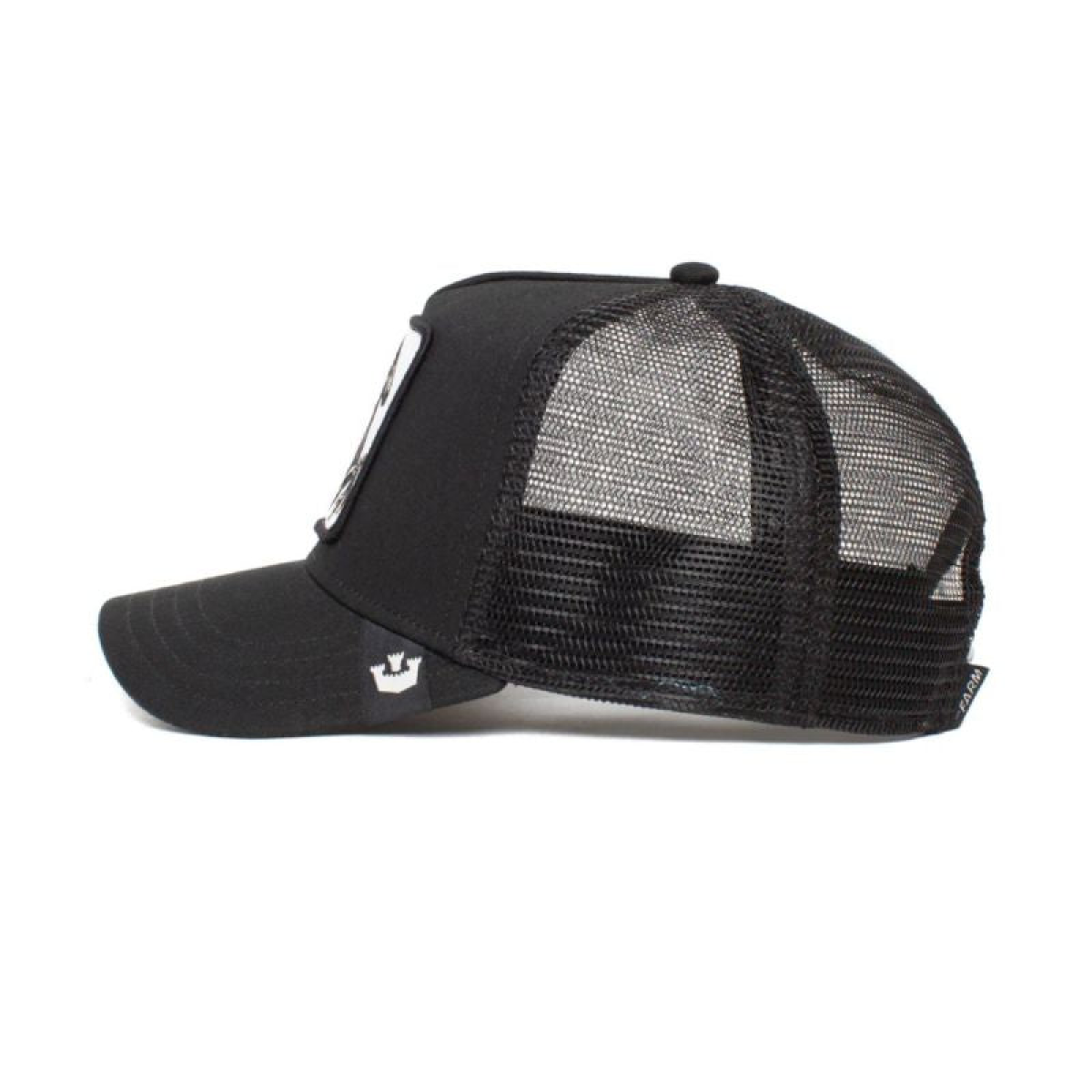 Black trucker cap with a Goorin Bros jacquard label on the visor.