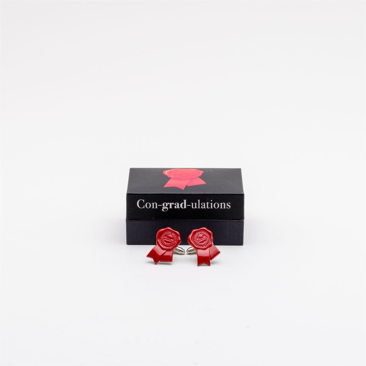 Wish the graduate in your life congratulations with this pair of wax seal rosette cufflinks. From the Graduation collection with CELEBRATIONS� - giftware to celebrate the superstars of education. Details: - Polished silver zinc alloy metal cufflinks - Glossy red epoxy wax seal finish - CONGRATULATIONS design with academic hat and scroll details - Hinged metal bar fastener - Luxury lidded gift box with CON-GRAD-ULATIONS gift box The Graduation range provides a wealth of luxury and quality keepsakes to remember this once in a lifetime occasion. More than just a memory. CELEBRATIONS� is the ultimate one stop shop for gifts for any occasion.