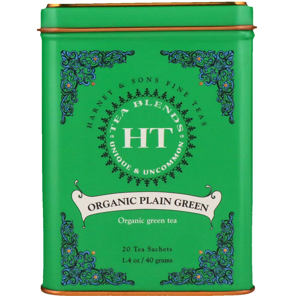 Tea Blends - Unique - Uncommon Green Tea Halal USDA Kosher A family collaboration gave rise to HT: Unique & Uncommon Tea blending. HT is grounded in the Harney tradition of providing the finest quality full-leaf teas and herbs, all packed in a stunning silken tea sachet. You can now enjoy the sophistication of full-leaf teas with teabag convenience. Plain Green Green Tea. Character: A smooth and refreshing green tea. Effects: Soothing Brewing Time: Less than boiling water 3 minutes Caffeine Content: 30-40 milligrams