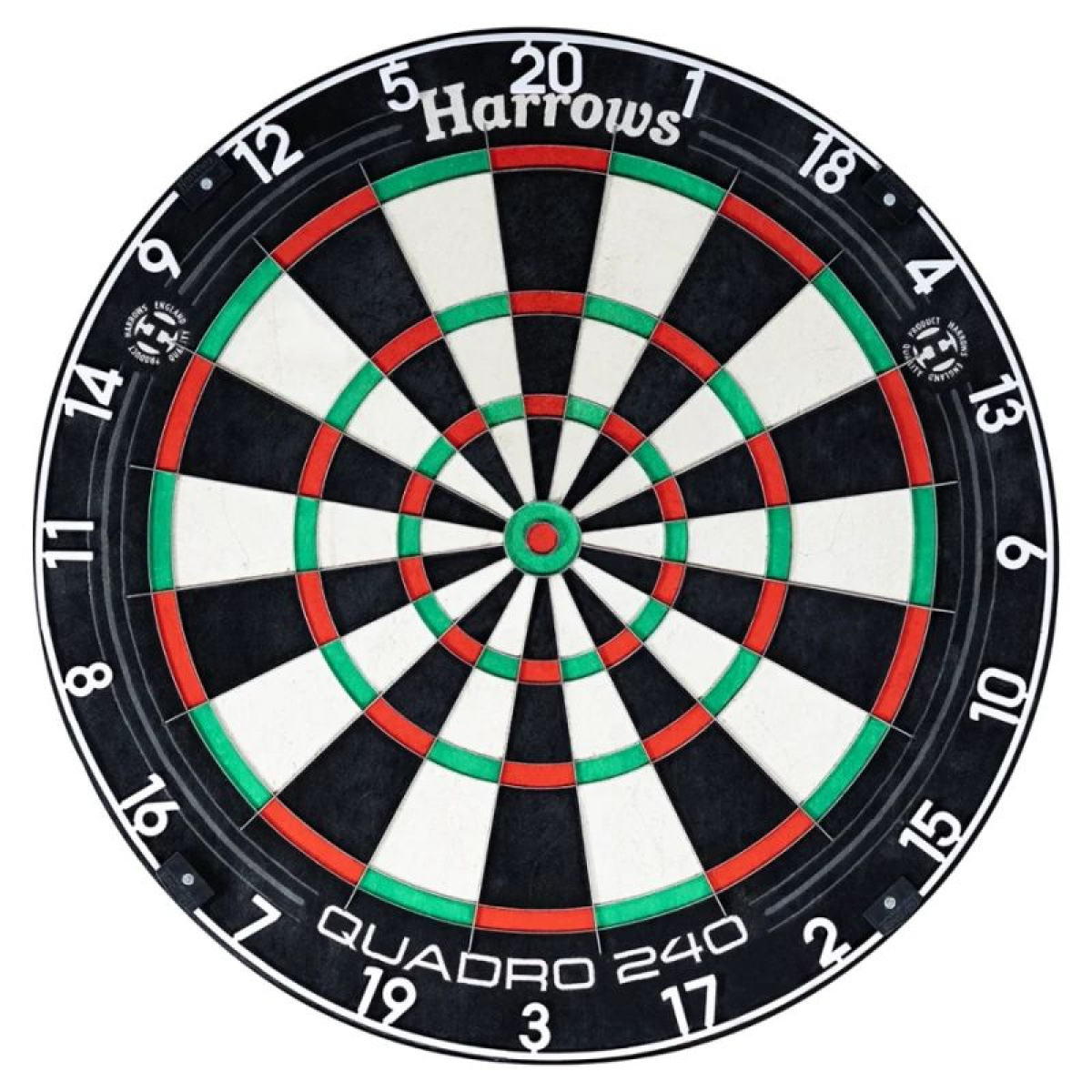 The Quadro 240 shield has an additional, fourth scoring ring – the so-called Quadruple Ring , placed between the triple field and the bullseye. It allows you to score as much as 80 points for one hit (Q20) and a maximum of 240 points in one round, which gives this shield a unique character and completely new strategic possibilities in the game.