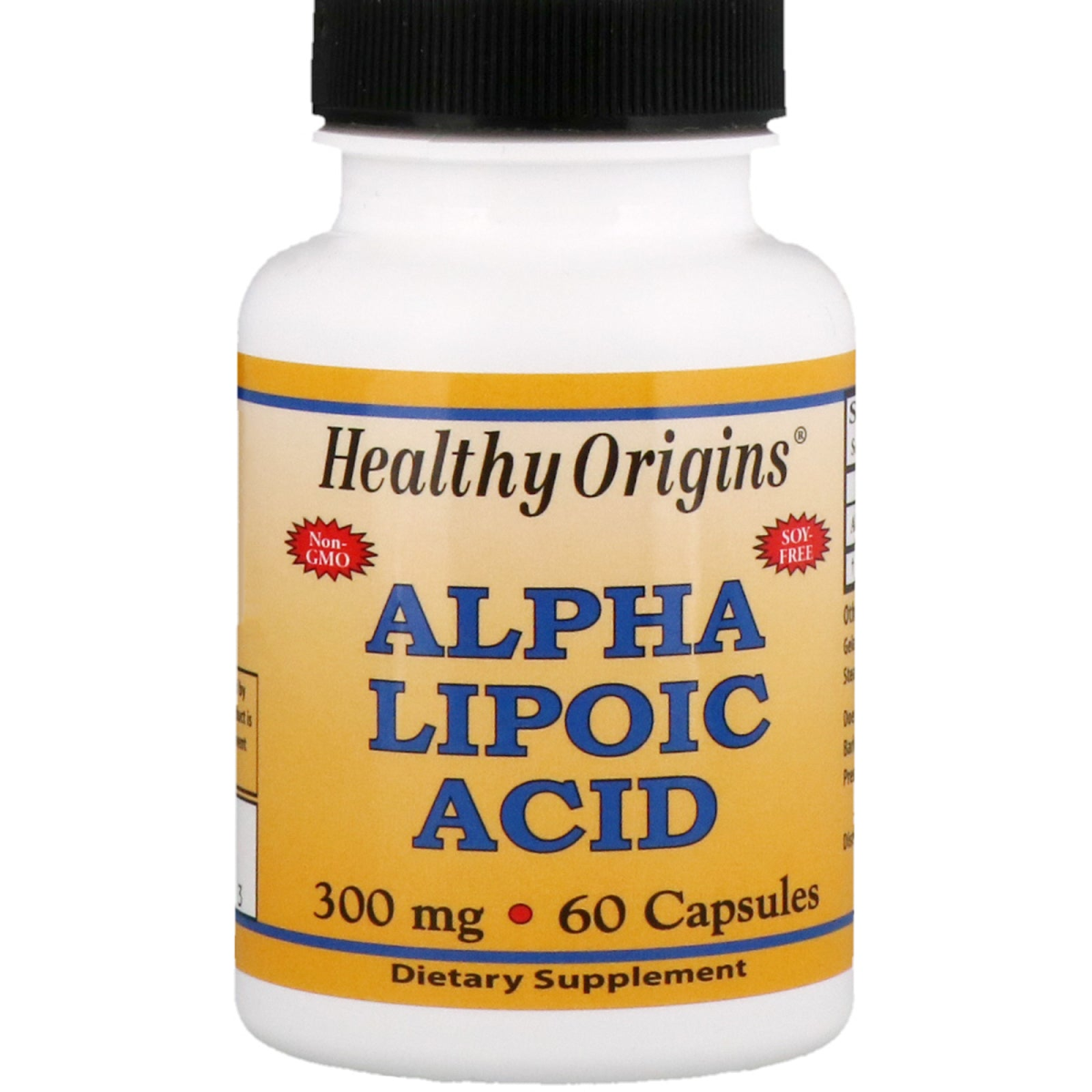 Non-GMO Soy-Free Dietary Supplement Healthy Origins Alpha Lipoic Acid is a powerful antioxidant which works synergistically with other antioxidants such as Vitamin E, Vitamin C and Glutathione.