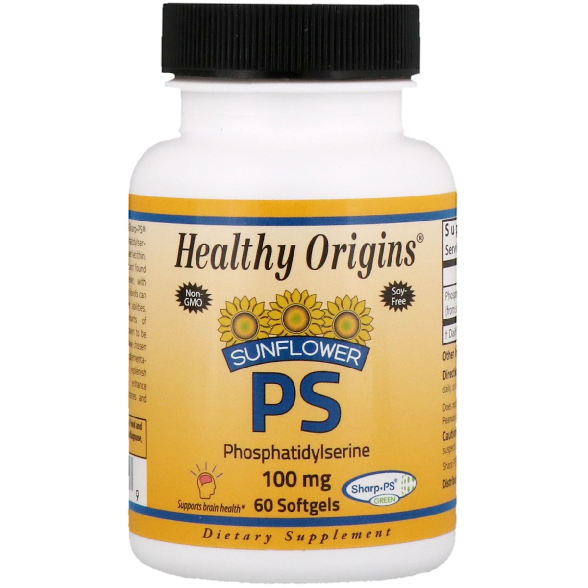 Non-GMO Soy-Free Supports Brain Health Sharp-PS Green Dietary Supplement Healthy Origins Sunflower PS featuring Sharp-PS Green is a unique, soy-free source of phosphatidylserine derived from European, Non-GMO sunflower lecithin. Phosphatidylserine is a phospholipid compound found naturally in brain cell membranes, however, with advancing age, our natural phosphatidylserine levels can diminish, which may impact our cognitive abilities. Unfortunately, obtaining significant amounts of phosphatidylserine through our diet has proven to be quite difficult. This is why many individuals have chosen to take phosphatidylserine supplements. Supplementation with phosphatidylserine may help to replenish depressed levels of phosphatidylserine, enhance cognitive focus, nourish brain cell membranes and support healthy cognitive function.