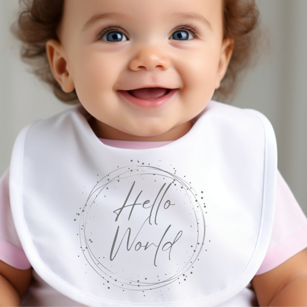 Hello World Silver Circle Baby Vest, babygrow, Romper Sleepsuit Onsie, Bib