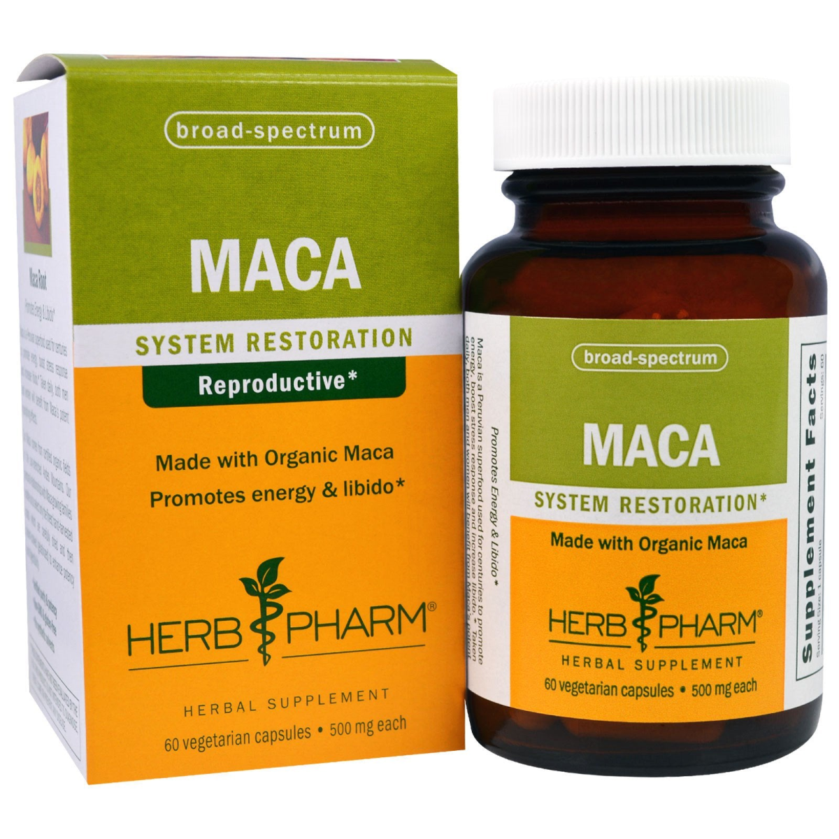 Broad-Spectrum System Restoration Reproductive Made with Organic Maca Promotes Energy & Libido Herbal Supplement 500 mg Each Certified Organic by Organic Certifiers Treat Yourself to Better Health Herbs are safe and they work, which is why they are integral to healthy lifestyles all over the world. The variety and flexibility of medicinal herbs give you the power to take charge of your-well-being. Isn't it about time you "Treat Yourself to Better Health"? Praised for over 35 years for our high standards of herbal purity and potency, Herb Pharm is equally recognized for our unwavering environmental and social ethics. You can rely on us consistently effective products, and feel good about supporting an organization with purpose. Maca Root Promotes Energy & Libido Maca is a Peruvian superfood used for centuries to promote energy, boost stress response and increase libido. Taken daily, both men and women will benefits from Maca's potent nourishing effects. Our Maca comes from certified organic fields in the sun-drenched Andes Mountains. Our personal relationships with Maca growing families enable us to select only the finest hand-harvested roots, which are carefully dried and then steam-cooked (gelatinized) to enhance potency and digestibility. Verified purity & potency Non-GMO & gluten-free No synthetic solvents