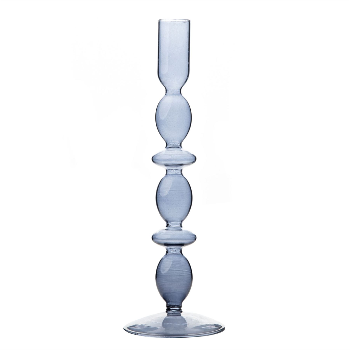 It features smooth, grey glass which is moulded into its unique design. The holder is designed to accommodate a traditional candle of choice.