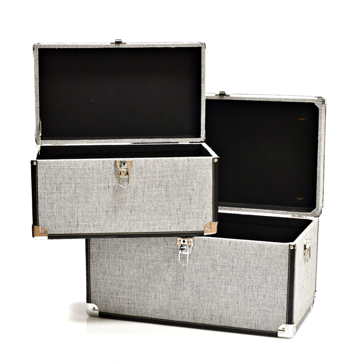 Bring some contemporary style and minimalistic elegance to your home with this set of 2 linen storage trunks.