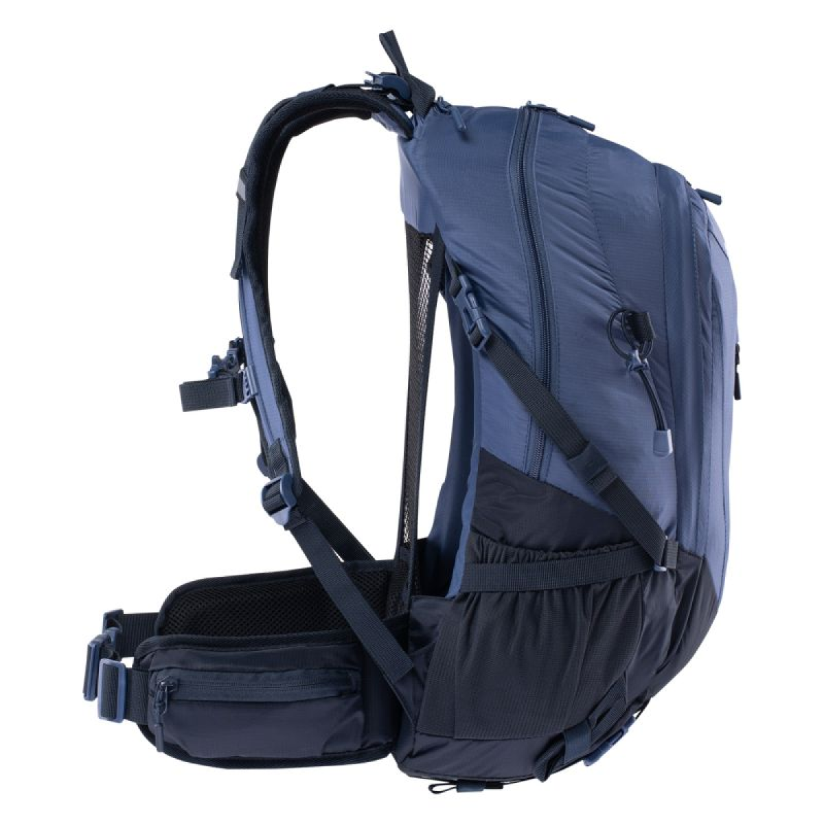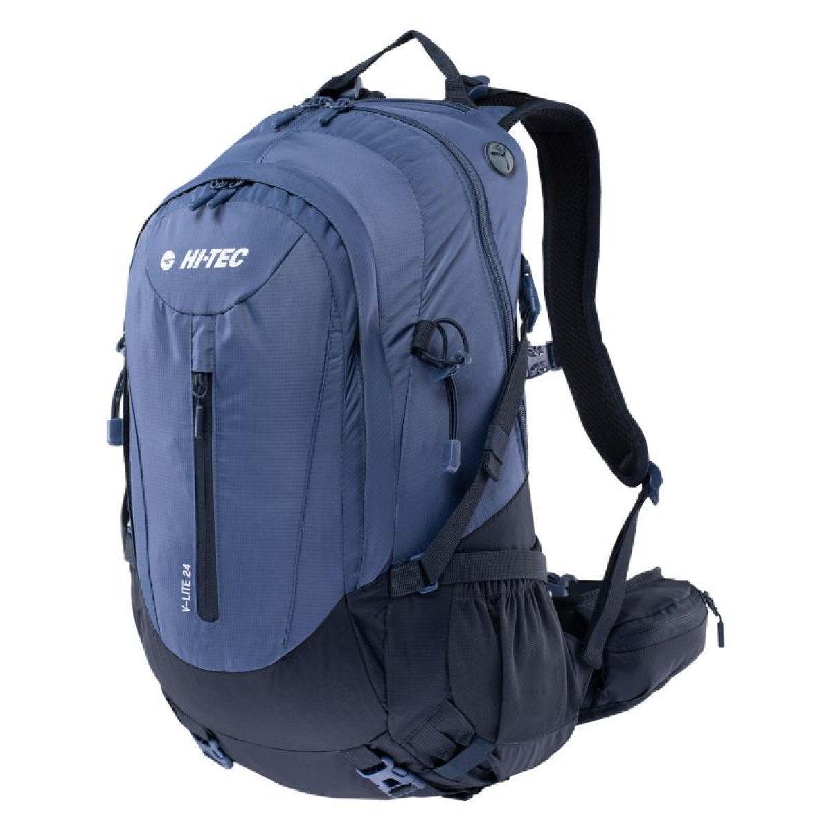 The V-LITE 24 by Hi-Tec is a comfortable backpack with a well-thought-out design. It has a spacious main compartment, perfect for packing everything you need for your hike. A mesh ventilation system stretched across a curved frame ensures adequate airflow during activity. Adjustable shoulder straps, a chest strap, and a hip belt with pockets allow for a personalized fit. The V-LITE 24 backpack has a compartment pocket and a smaller pocket on the front. This model also features a pocket with an audio outlet and two side pockets for a water bottle. Additional features include trekking pole straps and a rain cover.