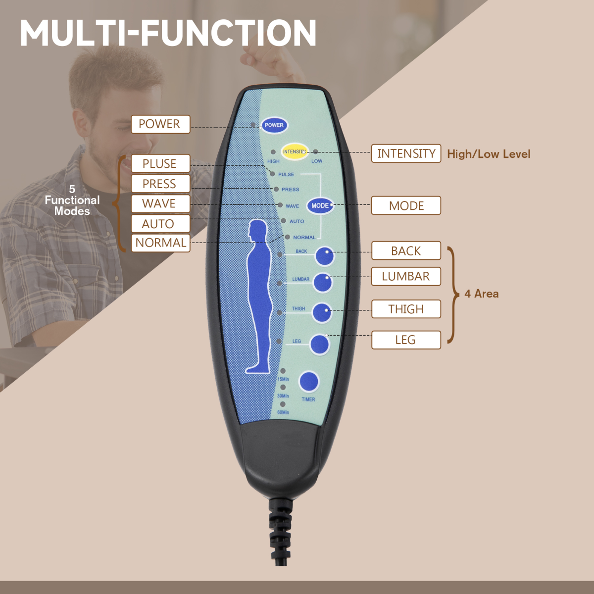 Built-in massage: The PU leather office chair is fitted with four points on the back and two on the seat - an easy way to massage and relax your body when you want. Controlled by an attached wired remote.Executive and comfortable: A stylish oversized design, made with a large seat, tall back, curved armrests and a full swivel seat, the executive office chair supports and moves with your body as you work.PU leather: A superbly sleek look which is smooth to the touch. Our home office chair is filled with thick sponge for comfort, with extra padding on the armrests and head area. Adjustable height: Sets between 48cm and 56cm to match your desk working level.Five wheels: The swivel chair is easy to move around, no lifting required. Dimensions: 112-120H x 64W x 74Dcm. Seat: 53.5W x 50Dcm.Maximum load 120kg. Assembly required.