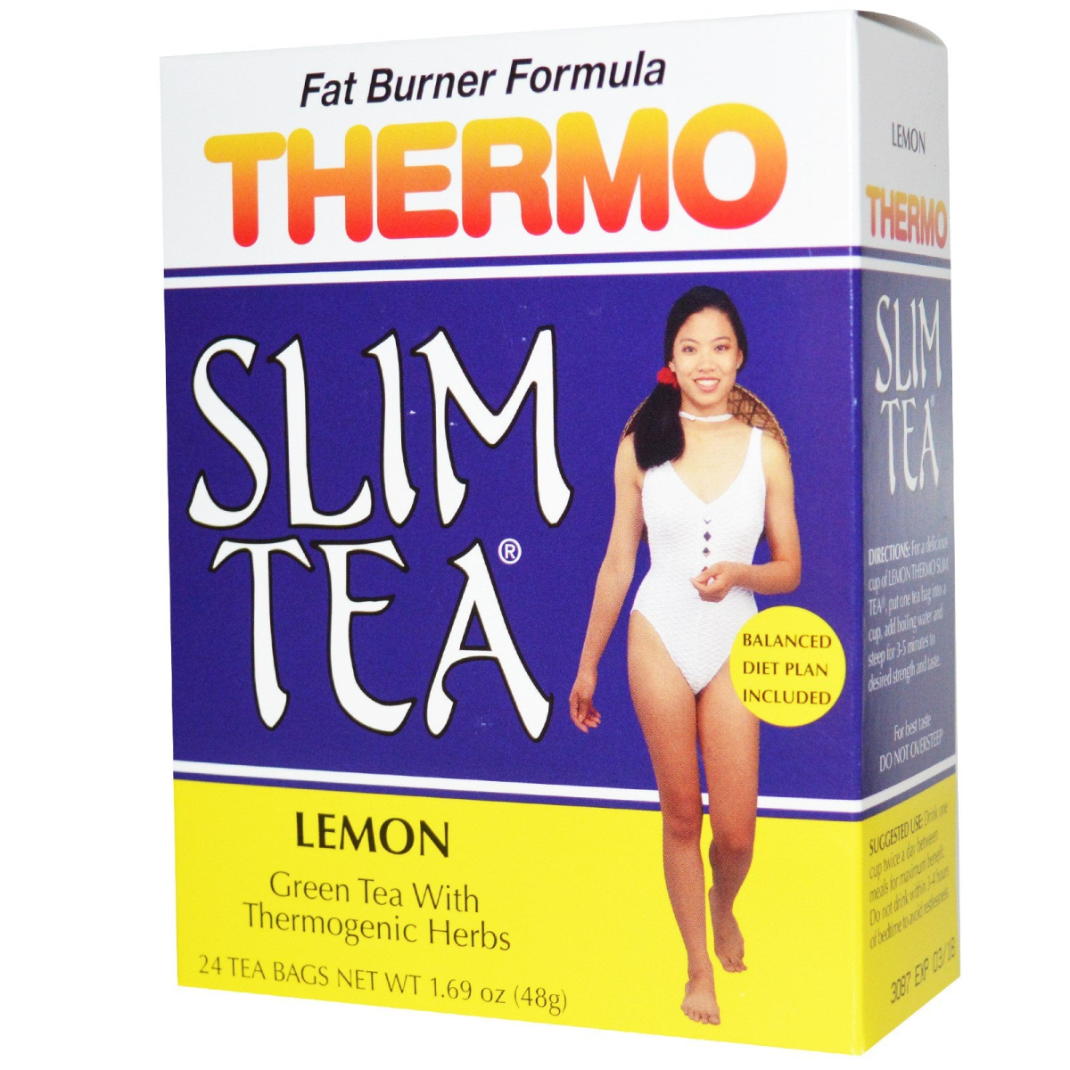 Fat Burner Formula Green Tea with Thermogenic Herbs Balanced Diet Plan Included Lemon Thermo Slim Tea combines antioxidant-rich Green Tea with heat producing herbs and spices that cause a thermogenic reaction by increasing metabolic activity. In effect, the body responds by not allowing excess calories to be stored as fat. With Balanced Diet Plan Thermogenesis is the body's natural process for burning off excess fat through the generation of heat. Studies have shown that certain herbal blends can synergistically assist this thermogenic response. Thermo Slim Tea is a delicious low calorie beverage that combines the well-known benefits of Green Tea (provides bioflavonoids and polyphenols) with White Willow Bark, Guarana, Ginseng (Panax), Eleuthero Root, Ginger, Licorice, and Damiana. These herbs receive a catalytic boost from Cayenne to help accelerate the metabolic process and support the whole concept of "fat burning" by converting calories to heat. Thermo Slim Tea's balanced tea, herbs and spices formula is further strengthened by the addition of Citrus Peel, Ascorbic Acid, Rose Hips and Acerola for extra antioxidant and Vitamin C value. As with any effective weight loss program, Thermo Slim Tea works best when combined with healthy eating habits and a consistent exercise program. See the enclosed Balanced Diet Plan for nutritious meal planning tips. Energize yourself! Combine a nutritious diet, regular exercise and Thermo Slim Tea to achieve better health and fitness!