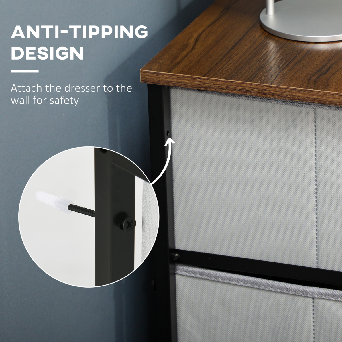 HOMCOM 6 Drawer Fabric Chest of Drawers w/ Wooden Top for Closet Hallway Grey