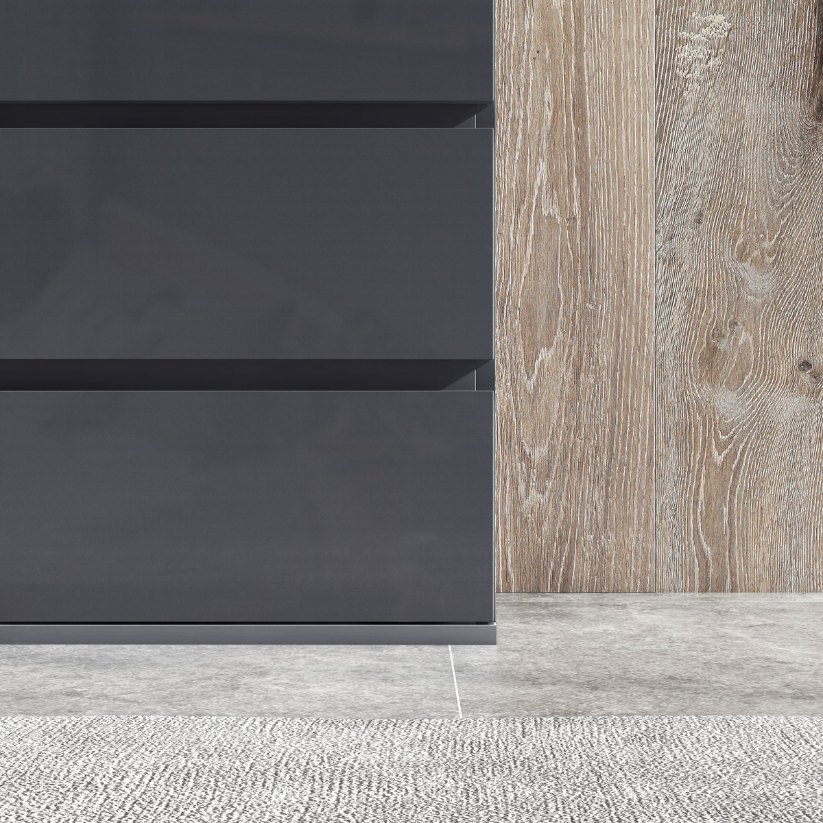 - Four drawers: storage space for organising clothing and more. Metal rails to open/close drawers smoothly - Handle-less design and high gloss finish for a sleek and modern look - Cushion damping guideway makes soft closing and prevent fingers from being pinched - Sturdy particle board structure: suitable for everyday use - Anti-tipping straps included: safe in homes with children and pets - Maximum load 30kg, assembly required