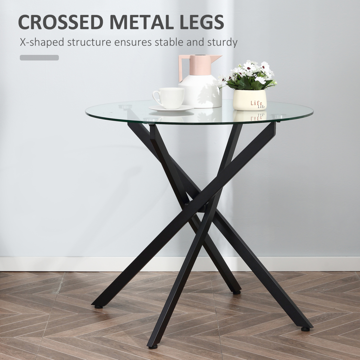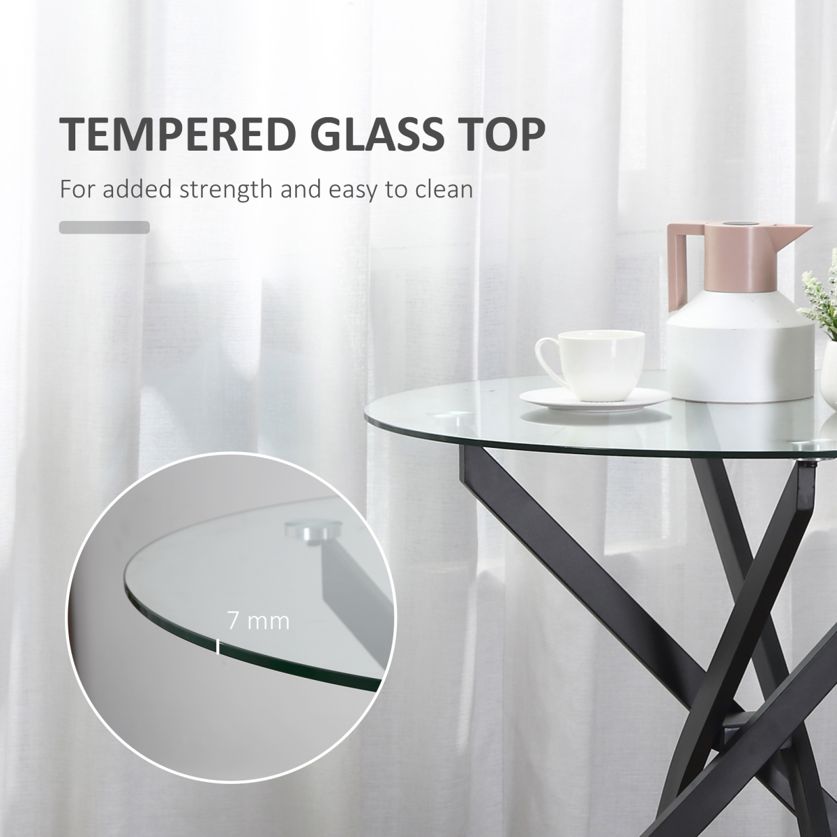HOMCOM Clear Glass Side Table Round Metal Dining Table Dining Black