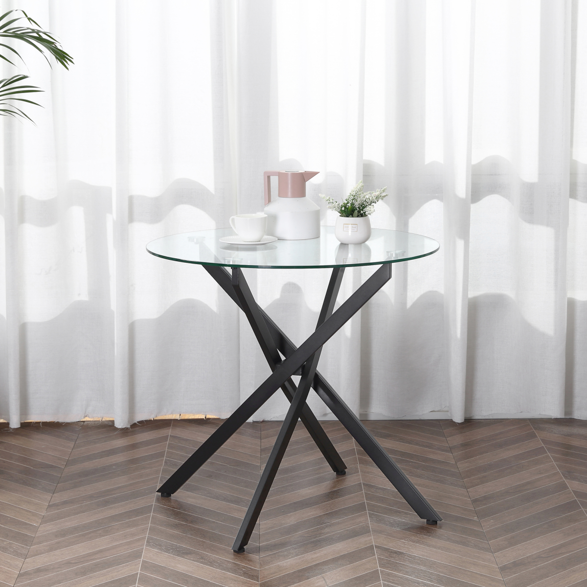 COOL DESIGN: Four legs crossed over, with a clear glass table top. A modern addition for your living room, lounge and office/study areas.TEMPERED GLASS TOP: A safe and solid space for displaying your best pieces, or providing a resting place for your coffee cup, side plates, remotes and books etc.METAL FRAME: Tough base for full support when being used. Also durable. Adjustable foot pads to keep table balanced, whilst protecting your floor.DIMENSIONS: 75H x 80L x 80Wcm. Glass: 0.7Dcm.MAXIMUM LOAD 30KG. ASSEMBLY REQUIRED.