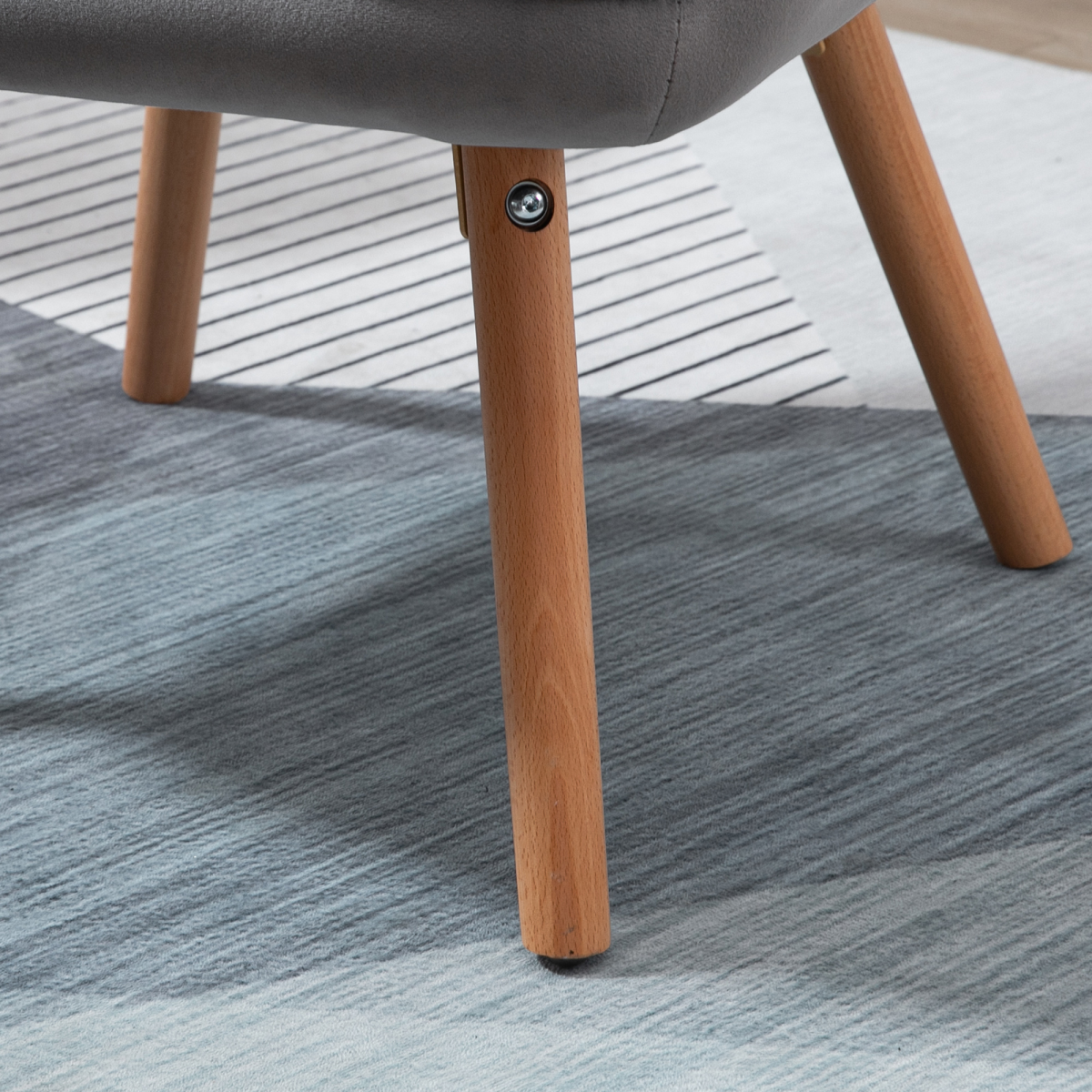 HOMCOM Modern Accent Chair Velvet-Touch Tufted Wingback Armchair Grey