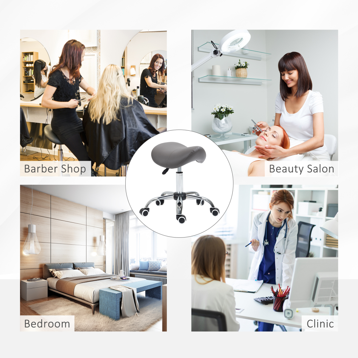 Multi-use: This salon chair can be used for hairdressers, beauty salons, tattoo parlours or even for your home.49-61cm adjustable height: Set this beauty stool to a level best for you - no straining the body at awkward angles.Padded seat: Curved shape to adapt to body better, will help your posture. Padded for comfort, wrapped in smooth faux leather.Metal base with five wheels: Weighted base so the stool keeps upright. Wheels to move around easily ? perfect for when cutting hair and carrying out beauty tasks.Dimensions: 49-61H x 52L x 53Wcm. Seat: 35L x 36Wcm. Maximum load 120kg. Assembly required.