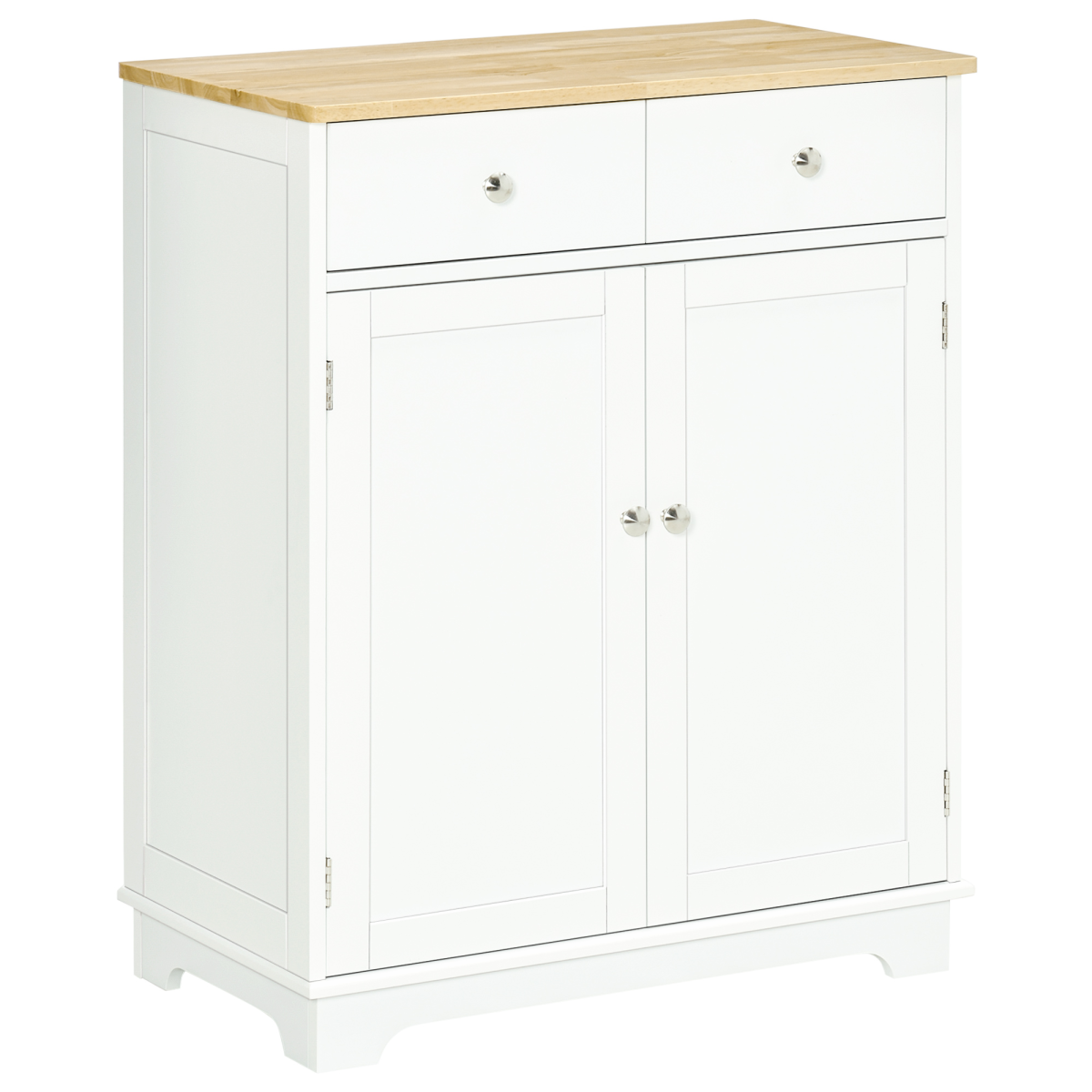 HOMCOM Rubber Wood Top Kitchen Cupboard Side Cabinet Island w/Adjustable Shelf