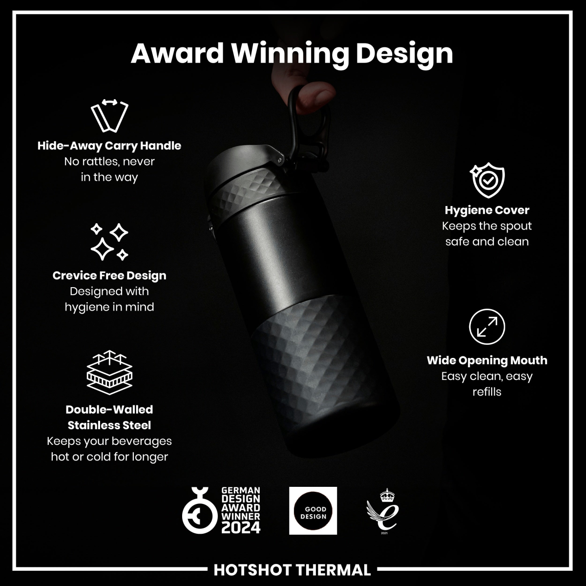 HotShot Leak Proof Insulated Cup, Travel Mug, Black, 360ml (12oz)