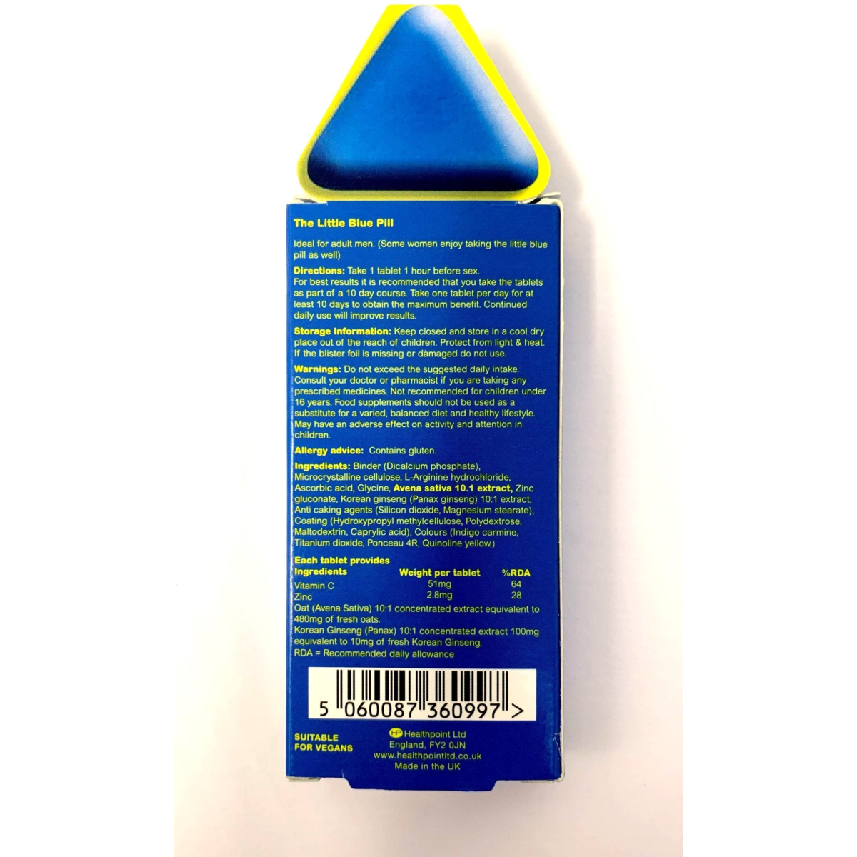 Natural ingredients. Take 1 hour before sex. Ideal for all adult men. Food supplement.Food supplement. Keep out of sight and reach of children. Do not take is seal is broken. Food supplements should not be used as a substitute for a varied, balanced diet and healthy lifestyle. Do not exceed the suggested daily intake, please see pack for ingredients list. Not recommended for children under 16 years. Please read all instructions carefully before use.
