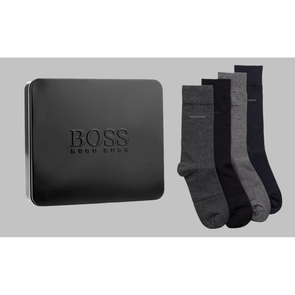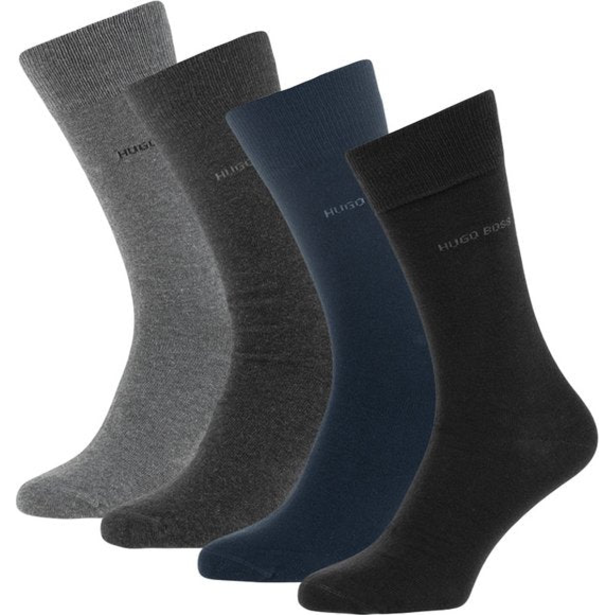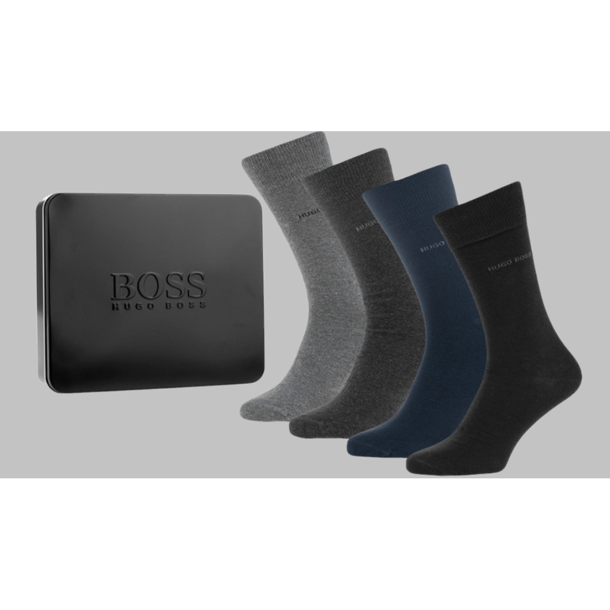 Hugo Boss Gift Set - 4 Pairs of Premium Men's Socks (Mixed Black, Blue & Greys)
