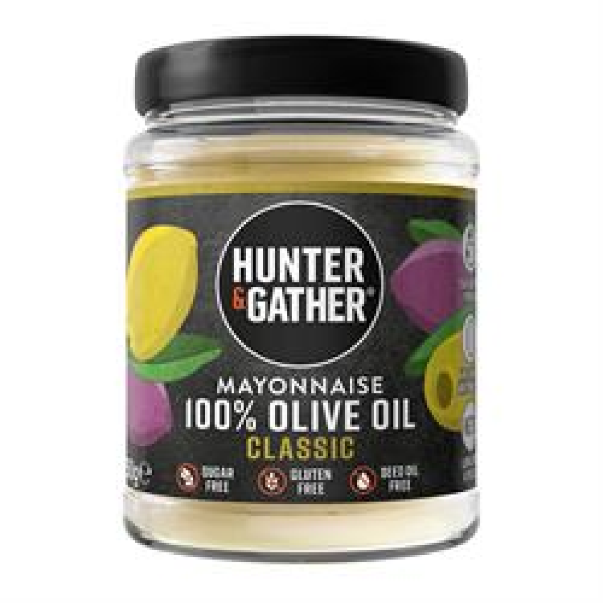 Hunter & Gather 100% Olive Oil Mayonnaise is a little more evolved than the average Mayonnaise... We have locked in the goodness of over 250 olives per jar, with absolutely no compromise on taste or texture. In fact, we think it is superior compared to commercially produced Mayonnaise - just check out our reviews! It has a rich, homemade like lusciousness with a velvety, smooth texture. Perfect for Paleo & Keto diet Best of all, it's FREE FROM any nasties, including: Sugar, Gluten, Dairy, Mustard, Industrial Vegetable, Seed oils such as Canola, Rapeseed, Sunflower and Soybean oils, Artificial Preservatives, Emulsifiers and Thickeners With the 'leading' brand containing no fewer than 11 ingredients and consisting of the following: Seed & Grain Oils originally created as mechanical lubricants, have been shown to contribute to inflammation and high in Omega 6; Eggs from questionable or unknown sources; Hidden sugars, vinegar made from wheat and other allergens; Artificial preservatives and thickeners such as Calcium EDTA.