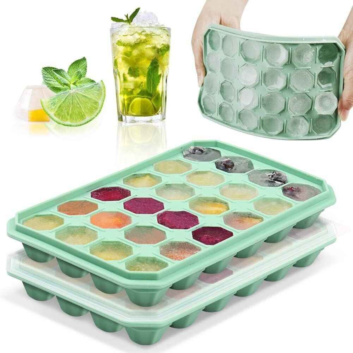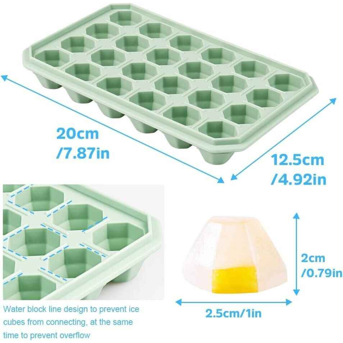 - 2 Packs Ice Cube Tray with Lid: Water block line design and heightened edge of the ice tray for freezer to prevent water overflow and ice cubes from connecting. Cover the Non-spill lid, form an airtight food storage containers to prevent smell between food.