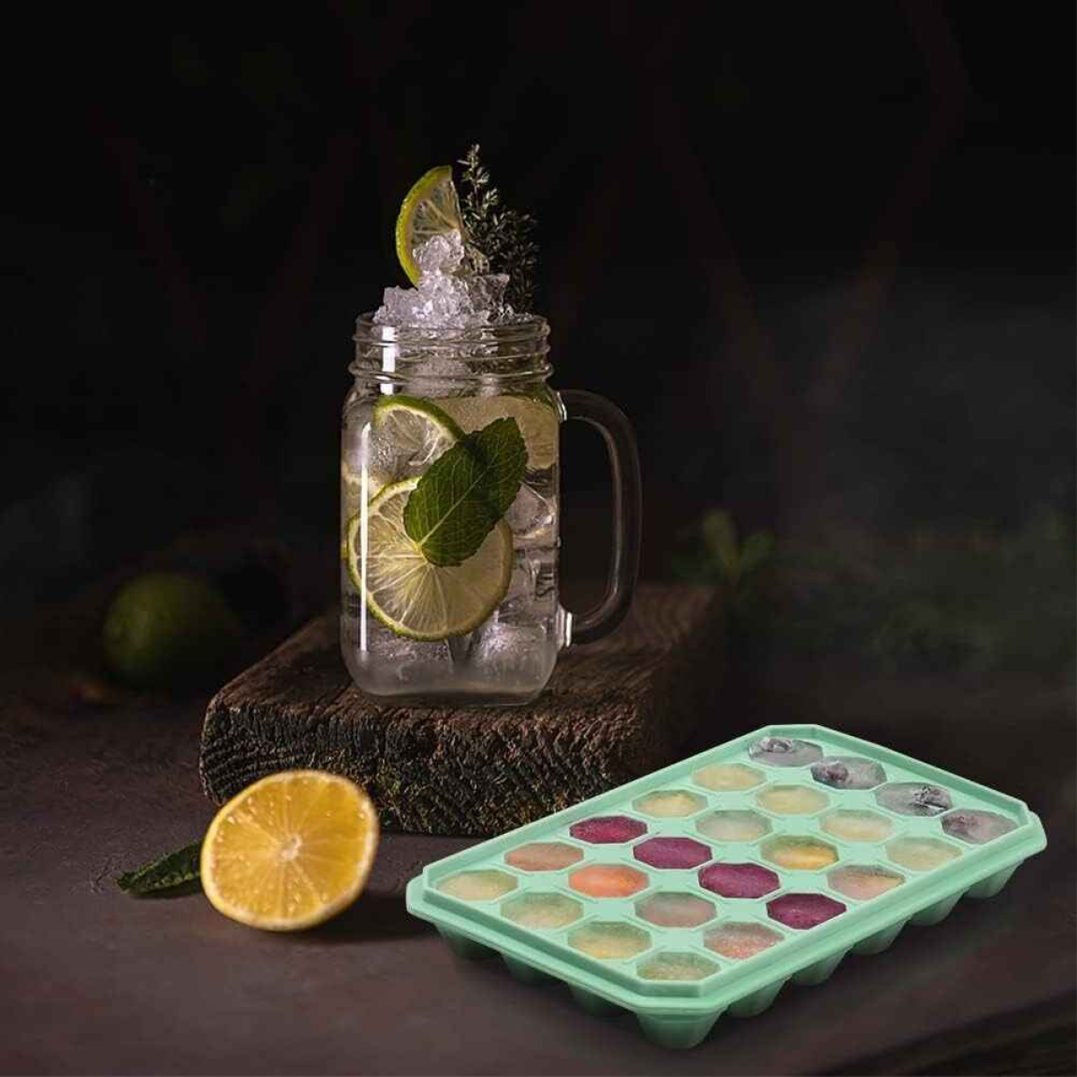 Ice Cube Tray with No Spill Lid Easy Release 48 Cubes Whiskey Cocktail