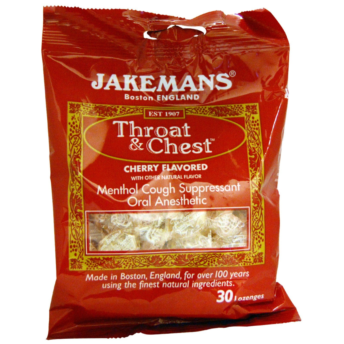 Est 1907 With Other Natural Flavor Oral Anesthetic Made in Boston, England, for Over 100 Years Using the Finest Natural Ingredients Jakemans famous and original Throat & Chest Lozenges are made with the finest natural ingredients, carefully blended with soothing menthol to obtain a unique mouth watering and refreshing taste. Once tasted they will be your favorite soothing lozenge! Uses Temporarily relieves: Cough due to minor throat and bronchial irritation occurring with the common cold or inhaled irritants. Occasional minor irritation, pain, sore mouth, and sore throat.