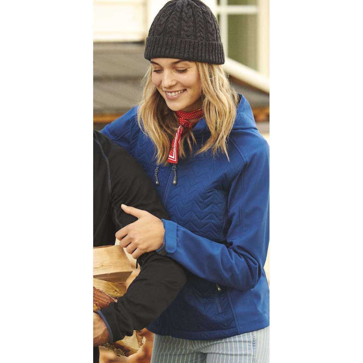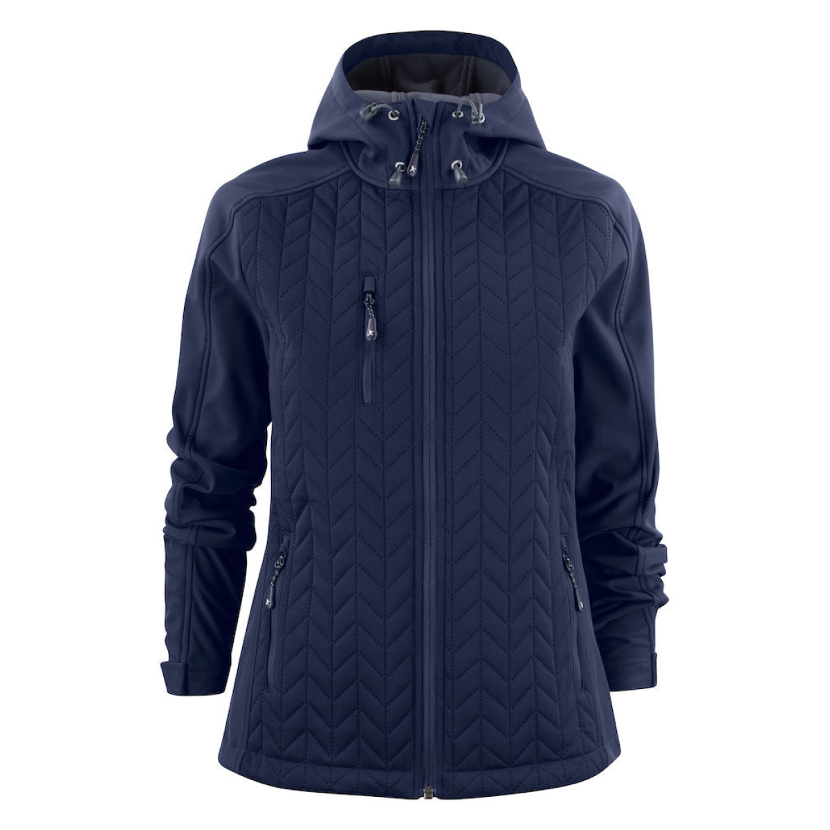 The jacket has a thermal quilted interlock torso with microfleece inside, complemented by stretchy softshell tone-in-tone sleeves, shoulders, hood and side panels. The jacket is warm for the material weight of 280g/m², giving you warmth without bulk and making it an excellent choice for outdoor activities such as walking, horseriding and golf.