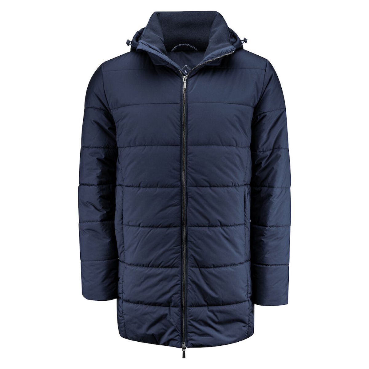 This padded coat from James Harvest is made for cold conditions, with a longer body that will keep you warm and cosy. This durable coat is made from 100% recycled polyester and comes packed in a biobased, compostable polybag.