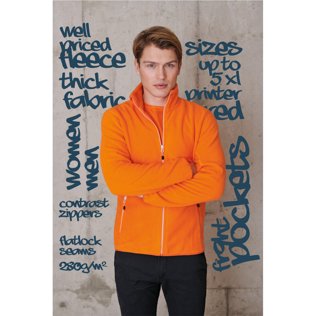 280g/m² mid-weight material | Full front zip | Zipped front pockets | Soft brushed material