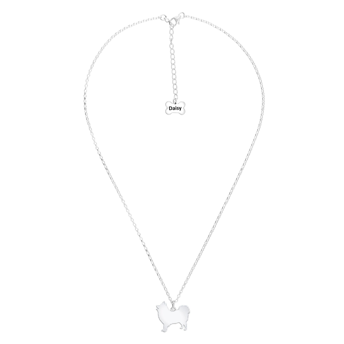 Japanese Spitz Silhouette Silver Necklace - Personalised