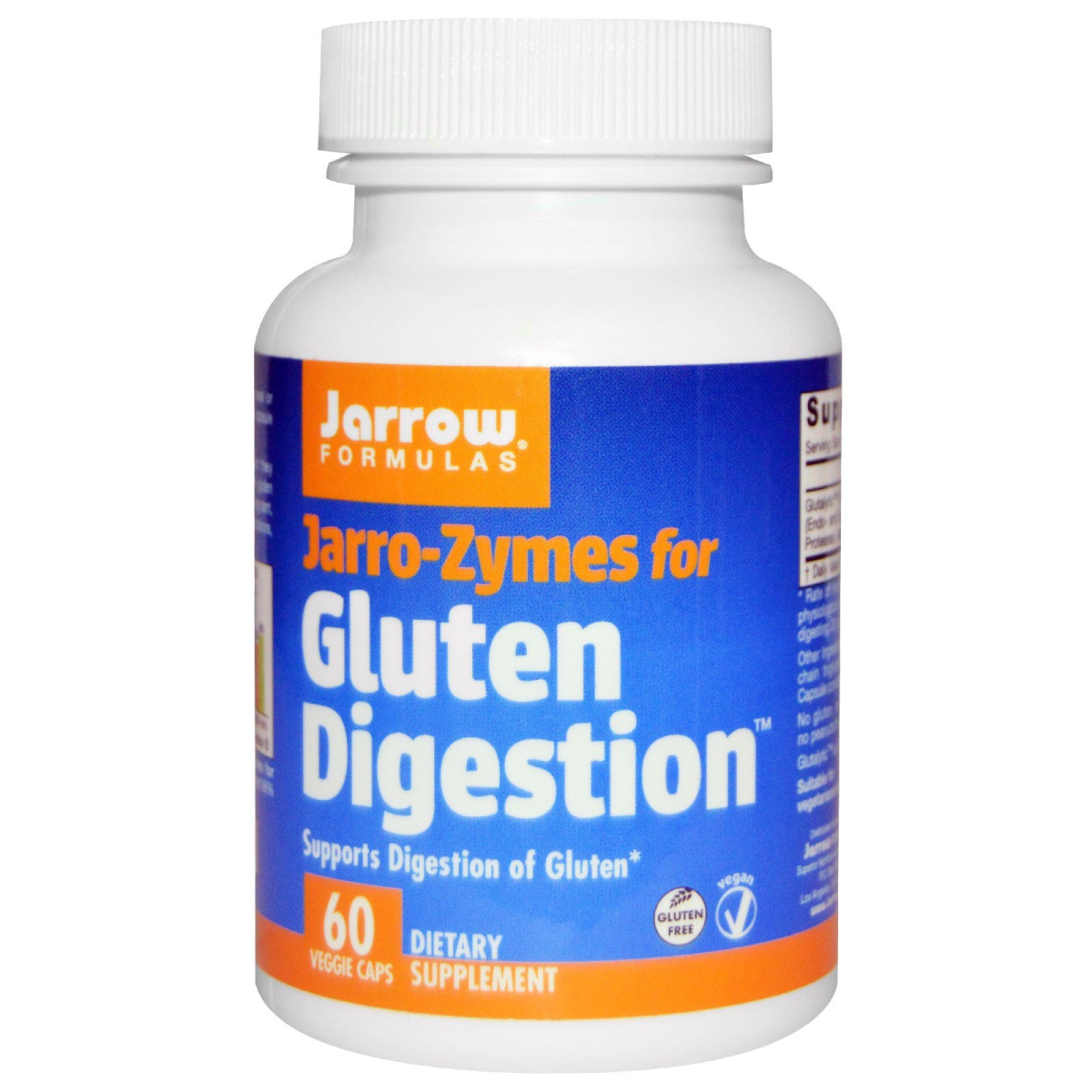 Supports Digestion of Gluten Dietary Supplement Gluten Free Vegan Veggie Caps Suitable for Vegetarians/Vegans Jarro-Zymes for Gluten Digestion combines bacterial- and fungal-derived gluten-digesting enzymes, including endo- and exo-peptidase capable of breaking gluten proteins into smaller peptides and amino acids to support management of a low gluten diet. 170 mg (1 capsule) of Jarro-Zymes for Gluten Digestion was able to digest 96% of gluten within 90 minutes.