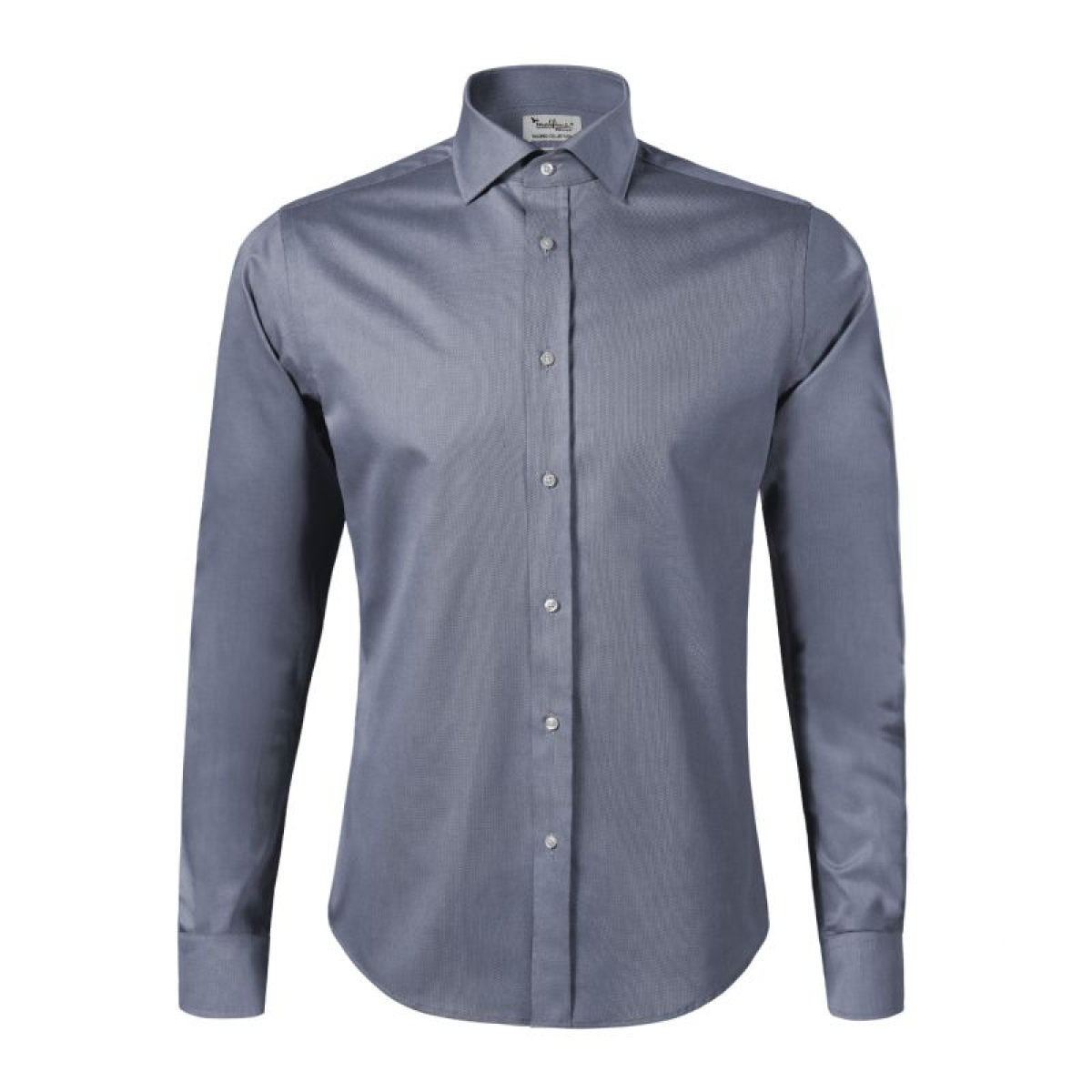 Micro Twill, 100% cotton, easy care designed by leading Czech tailor Roman Humlíček, extra long staple yarn, fitted cut with side seams, double yoke and back darts, shirt collar, reinforced collar finish, front parts finished with a pleat, long sleeves with semi-circular 2-button cuffs, pearl buttons in color 00 (2 spare buttons), rounded bottom hem