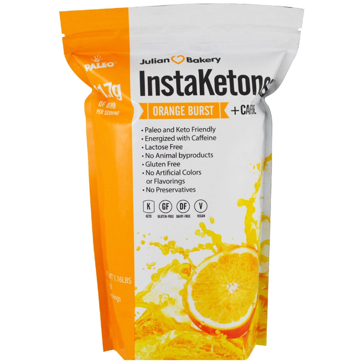 11.7 g of BHB Per Serving Paleo and Keto Friendly Energized with Caffeine Lactose Free No Animal Byproducts Gluten Free No Artificial Colors or Flavorings No Preservatives Dairy-Free Vegan 30 Serving InstaKetones is a true game changer in helping you reach and maintain your ideal weight. InstaKetones (Exogenous Ketones) dramatically increases endurance and promotes a leaner more sculpted look. It’s easy to be Keto and put your body into fat burning mode with just one scoop. Within 60 minutes it literally increases your measurable blood ketone level up to 2 points+. Ketones are a super fuel used by the muscles and the brain, where they generate more energy (ATP) per unit of oxygen consumed than do carbohydrates, protein, or fat. InstaKetones has 11.7 grams of the ketone body Beta-Hydroxybutyrate (BHB) per serving in a delicious orange flavored based with no artificial sweeteners, flavorings or colors. Consumptions of InstaKetones before exercise can result in significant decreases in oxygen demand and increases in performance – and may also heighten mental acuity and performance. IntaKetones is excellent for ketogenic dieters who need energy but must limit carbohydrate intake. InstaKetonese may also be used by individuals who consume carbohydrates to provide an additional energy source and limit exercise induced glycogen depletion.