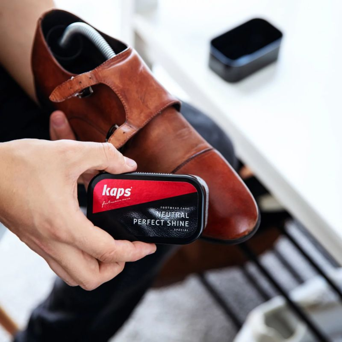 • The effect of instant shine is achieved by moving the sponge over the surface of the shoe and other accessories.