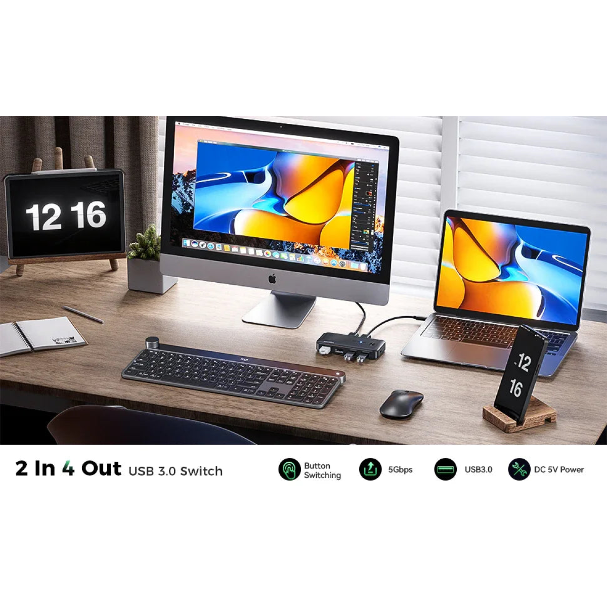 - Simple Device Switching: Easily switch between computers with the press of a button, eliminating the hassle of physically reconnecting devices or using multiple cables.