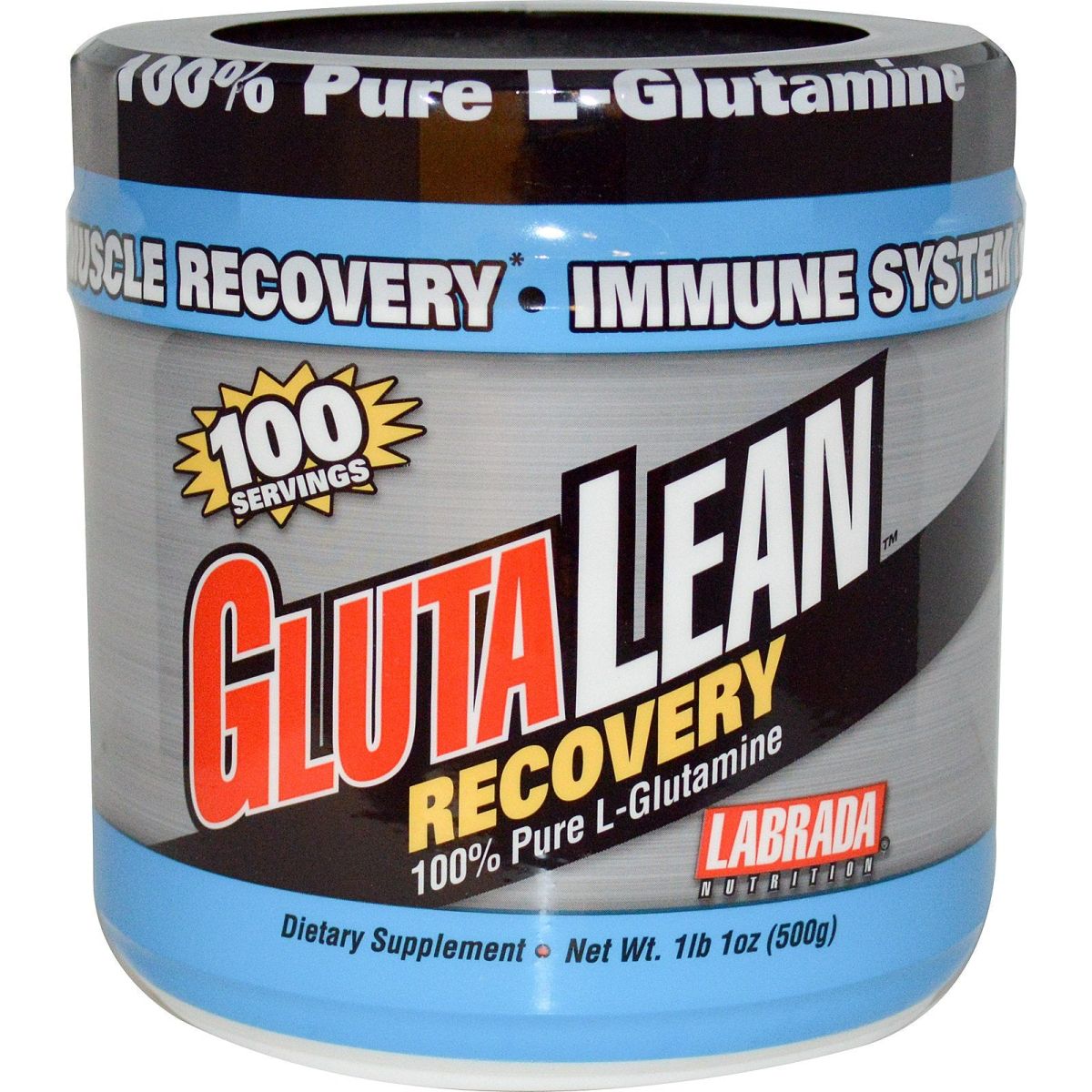 Improves Muscle Recovery Immune System Booster 100 Servings Dietary Supplement 100% Pharmaceutical Grade GlutaLean 100% Pure L-Glutamine contains only pure brand pharmaceutical grade L-Glutamine. Glutamine is an amino acid that accounts for approximately 60% of all free amino acids in the body. Muscle tissue contains especially high concentrations of glutamine. Supplemental glutamine can help prevent muscle tissue breakdown, increase protein synthesis, increase glycogen storage (energy stores) in muscle, and supports healthy immune function. Quality Guarantee Seal - Every Labrada products is tested by an independent lab for purity and potency. Only then does it earn this seal. With Labrada products you get what you pay for. Lee Labrada's Quality Guaranteed "If it's on the label, it's in the bottle! This product is independent lab assayed for purity.